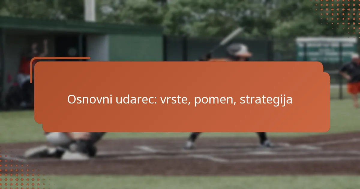 Osnovni udarci so ključni elementi bejzbola, razdeljeni na enojne, dvojne, trojne in domače teke, pri čemer ima vsak svoj strateški pomen. Ti udarci ne prispevajo le k sposobnosti ekipe za dosego točk, temveč tudi oblikujejo ofenzivne strategije in odločitve o teku po bazah. Z izpopolnjevanjem svojih udarnih tehnik in situacijske ozaveščenosti lahko igralci povečajo svoje možnosti za uspešne osnovne udarce, kar na koncu vpliva na izid igre.